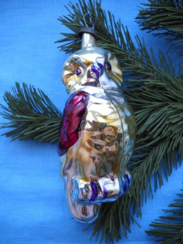 RUSSIAN ANTIQUE GLASS CHRISTMAS ORNAMENT OWL