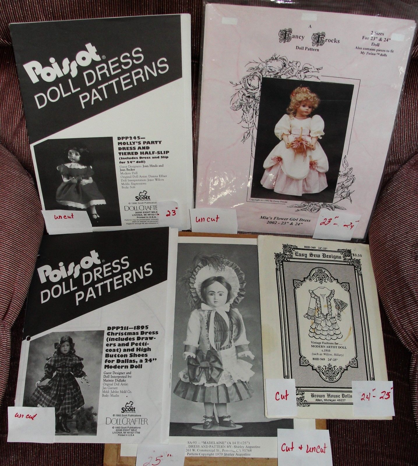 Lot of 5 Doll dress patterns;doll size 23"-25" ;antique,vint.,Ger. china dolls