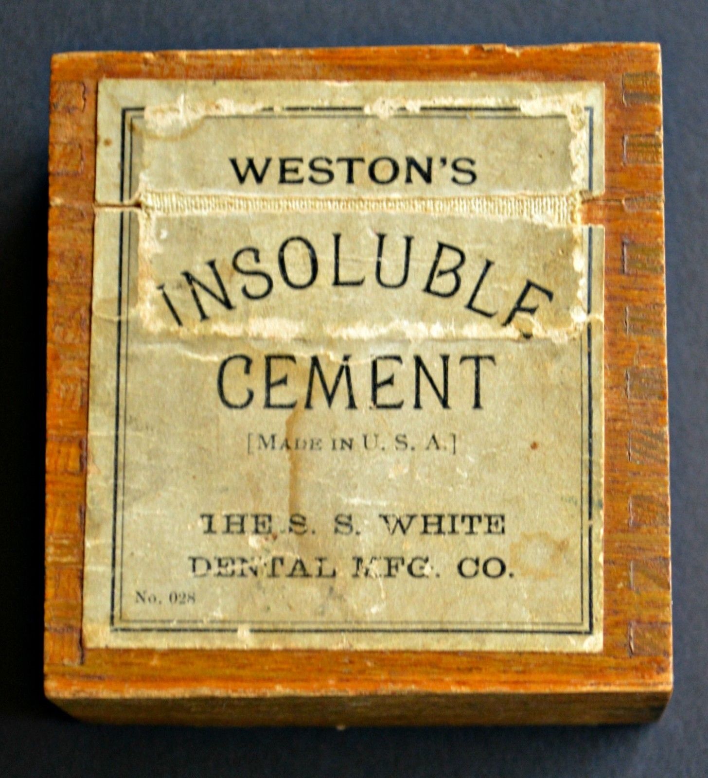 Weston''s Insoluble Cement Small 2.5 inch Antique Box - SS White Dental NFC Co