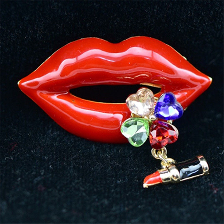 Antique Jewelry Women''s Pins Accessories Enamel Brooch Accessories Red Lip