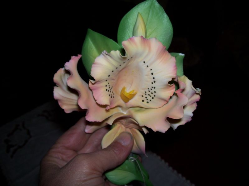 Capodimonte flower large Orchid centerpiece made in Naples stamped Italy
