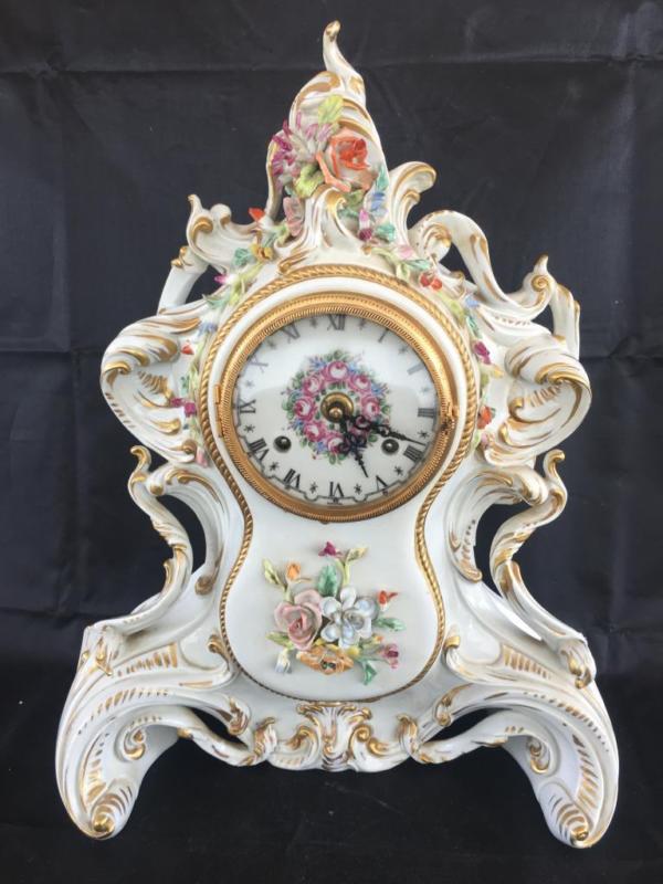 Title (ebay affiliate link): FINE ITALIAN NAPLES CARPIE PORCELAIN HAND PAINTED APPLIED FLOWER CLOCK.