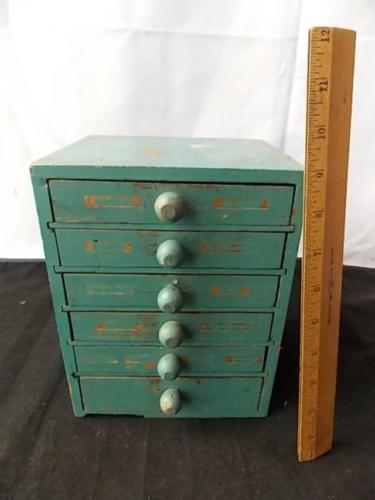 Vintage Shabby Painted Wood Box Small Chest of Drawers for Parts Jewelry
