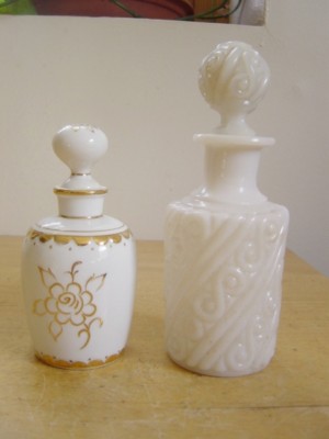 2 Vintage Perfume Bottle Matson Japan, Milk Glass