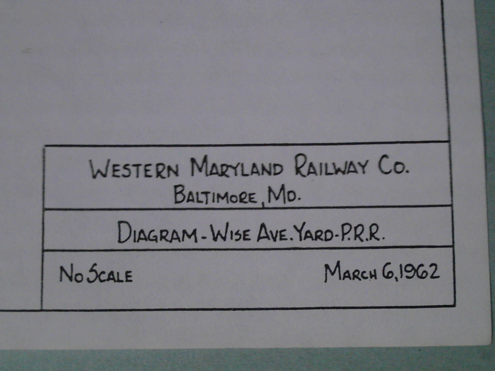 Western Maryland Railway Co. Wise Ave Yard Diagram PRR Baltimore, MD 3-6-1962