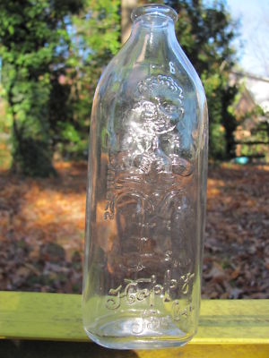 1930's HAPPY BABY GLASS MILK BOTTLE w/ EMBOSSED BABY