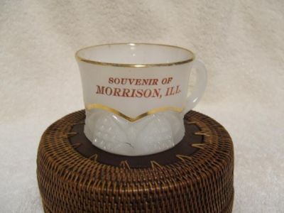 Pressed Milk Glass Cup Souvenir Morrison Illinois