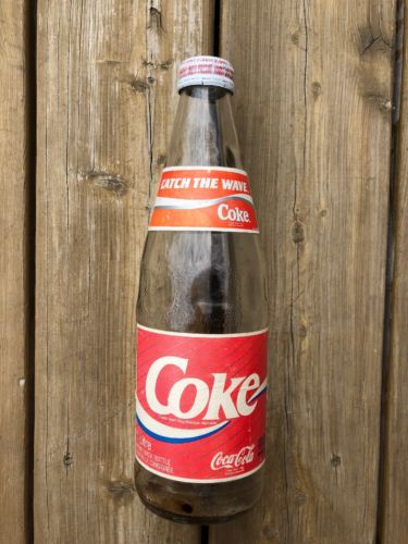 Title (ebay affiliate link): Vintage 1L Coke Bottle Glass Paper Labels Aluminum Cap Sealed Empty Bottle Rare