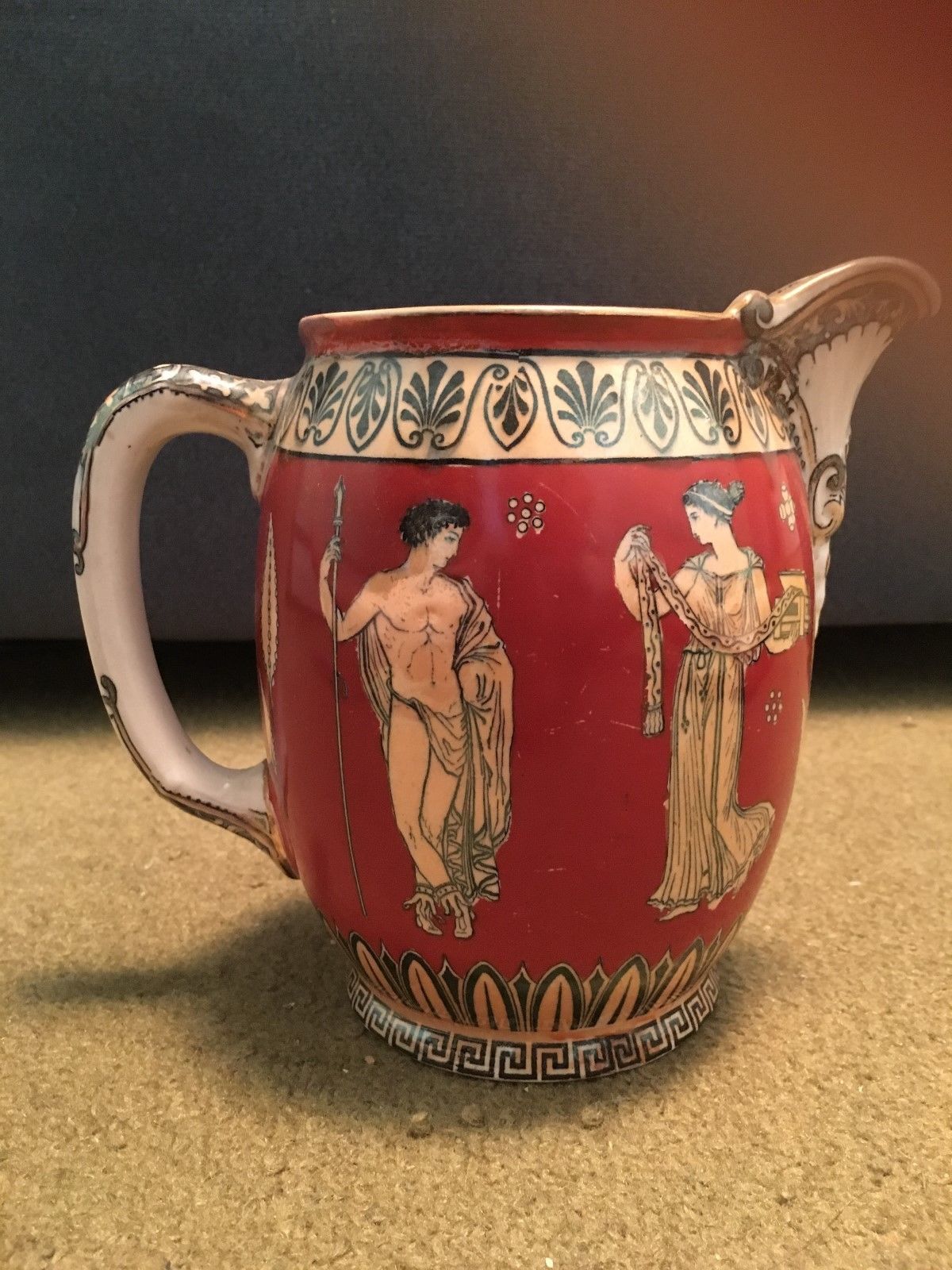 Royal Doulton Pitcher, 100 years old, Black and Orange Greek theme