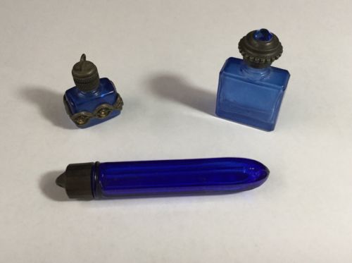 Group 3 Antique FRENCH GLASS PERFUME BOTTLES Portable