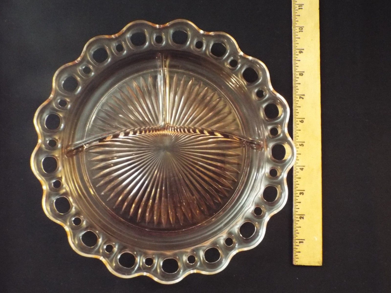 Title (ebay affiliate link): vintage 1935 old colony grill pale pink divided glass plate-open lace edge-10.25