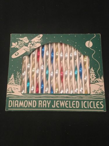 Title (ebay affiliate link): VINTAGE DIAMOND RAY JEWELED TWISTED ICICLE CHRISTMAS ORNAMENTS ORIG BOX