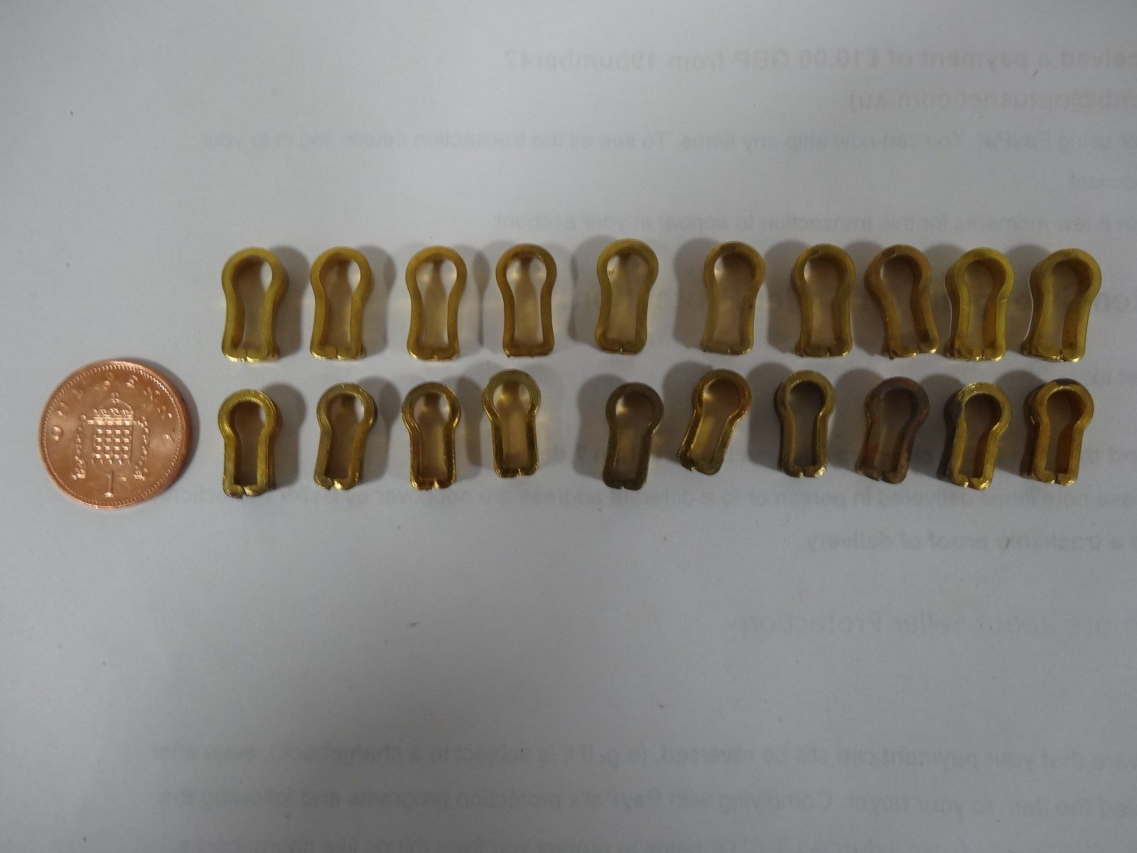 Title (ebay affiliate link): Old Stock Antique Brass Furniture Escutcheons X 20 Key Hole Inserts 10+10.