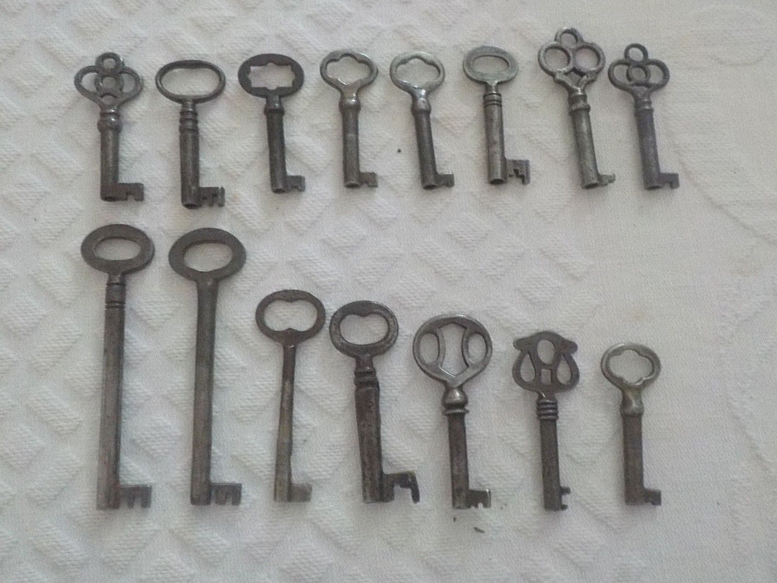 Title (ebay affiliate link): Lot of 15 Antique Vintage Keys Skeleton Furniture Barrel Keys