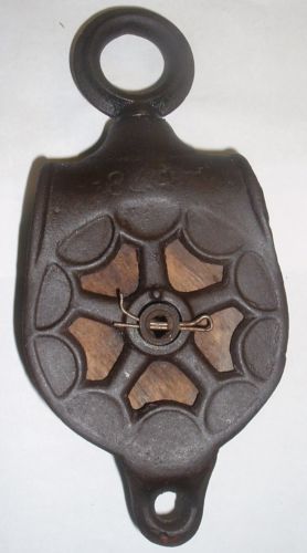 ANTIQUE CAST IRON PULLEY 5 PILLAR CENTER # 0 EARLY STYLE WOOD WHEEL