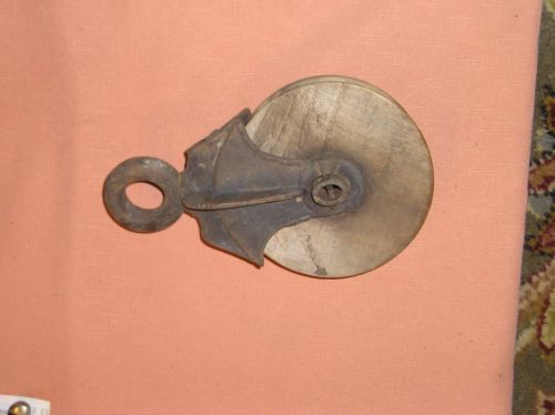 Title (ebay affiliate link): Antique Vintage Rusted Cast Iron & Wood Barn Pulley Primitive Farm Tool Decor