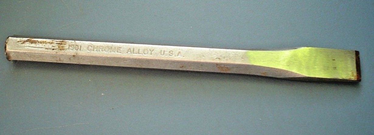 Title (ebay affiliate link): CHROME ALLOY 1901 METAL WOODWORK COLD CHISEL 5 1/2" LONG x 7/16" WIDE VINTAGE