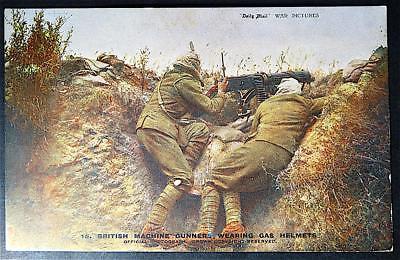 Postcard WWI British Machine Gunners Wearing Gas Helmets Daily Mail War Pictures