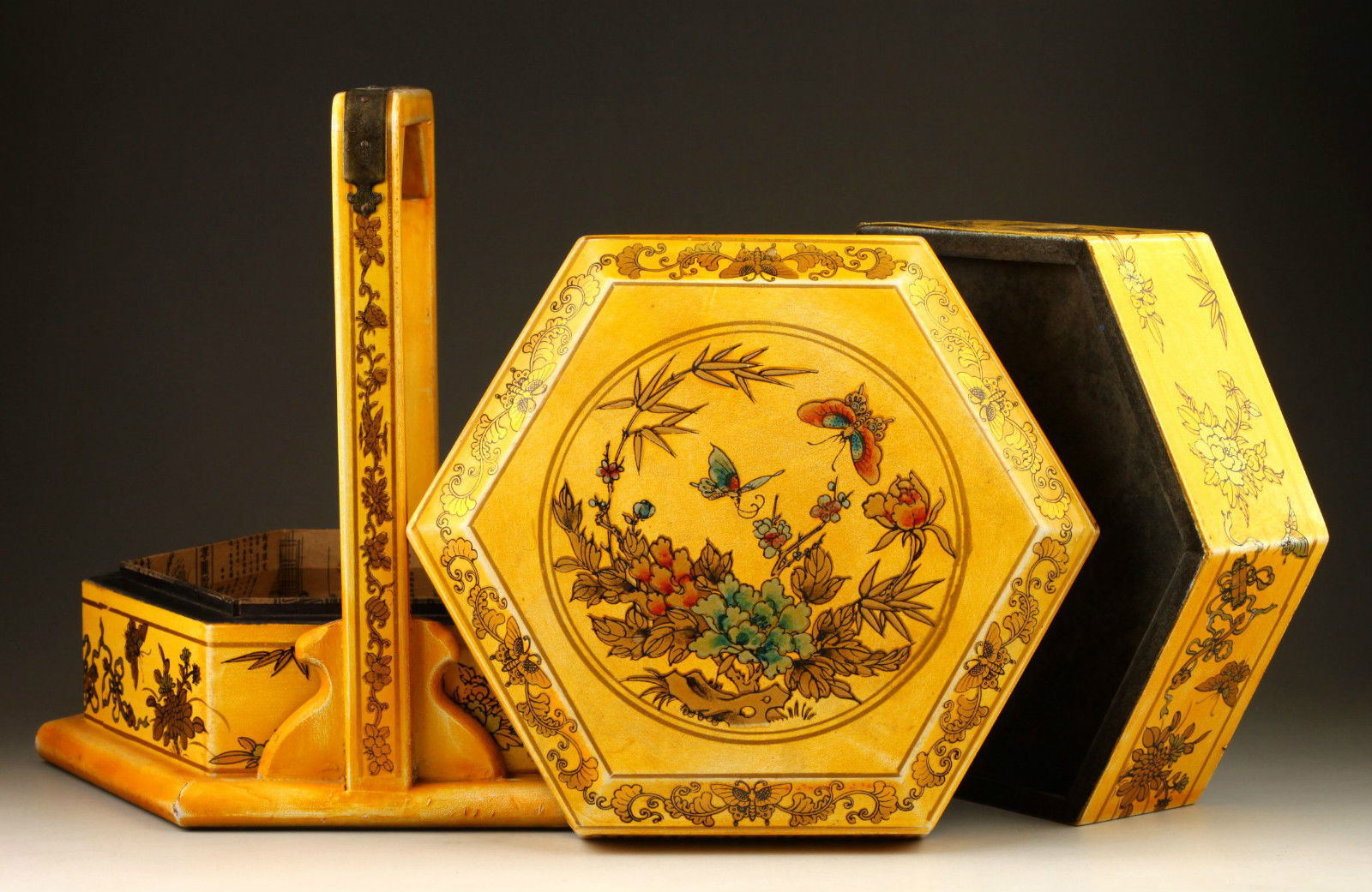Title (ebay affiliate link): Qing Emperor Yellow Valuable Leather Court Hamper Food Box Double Layers Flower