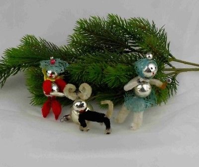 Title (ebay affiliate link): 4 X Vintage Glass,Chenille Christmas Ornaments,figures and cat.Czechoslovakia.
