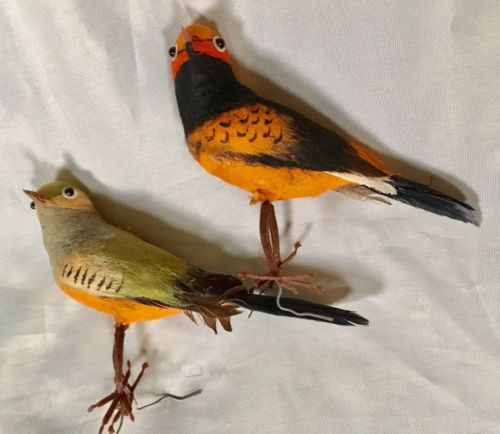 Antique Vintage Spun Cotton Feathered Birds