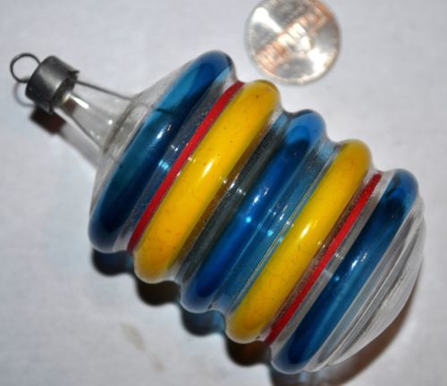 Vintage 1930s PREMIER war-era UNSILVERED "barrel-shape" glass CHRISTMAS ORNAMENT