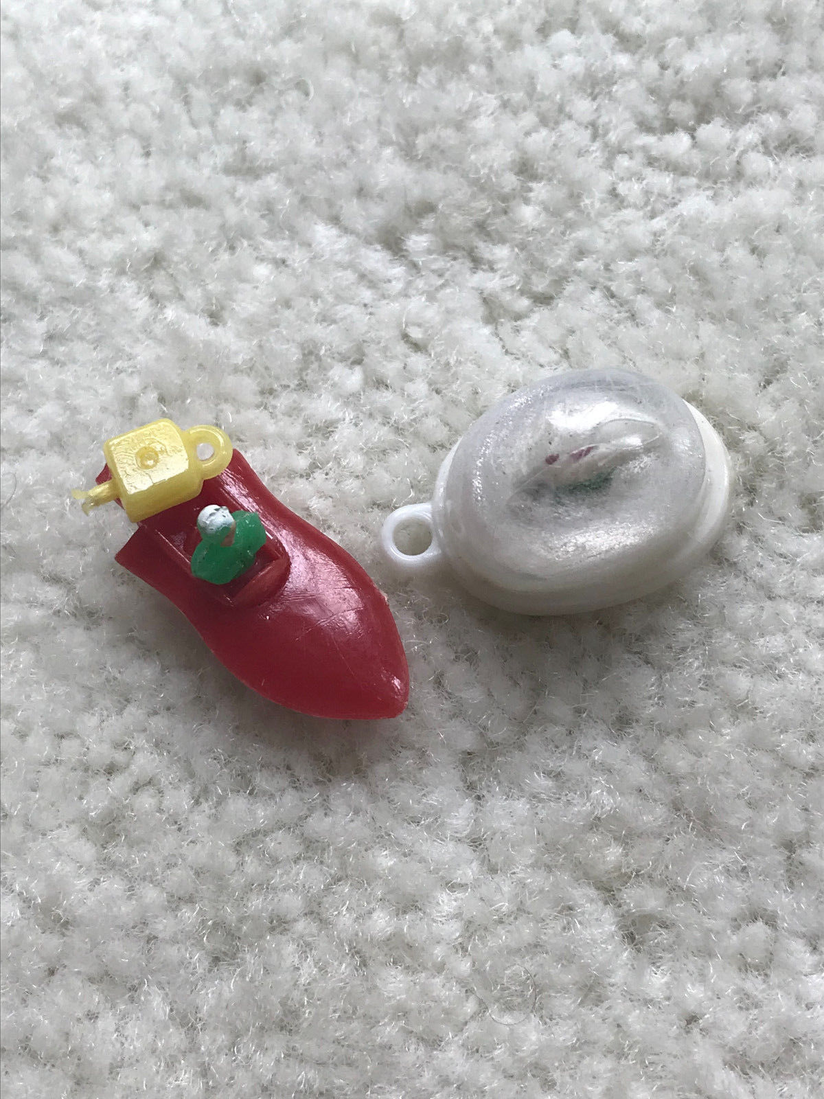 TWO HARD TO FIND VINTAGE 1960''S MECHANICAL GUMBALL CHARMS SNOWGLOBE & BOAT!