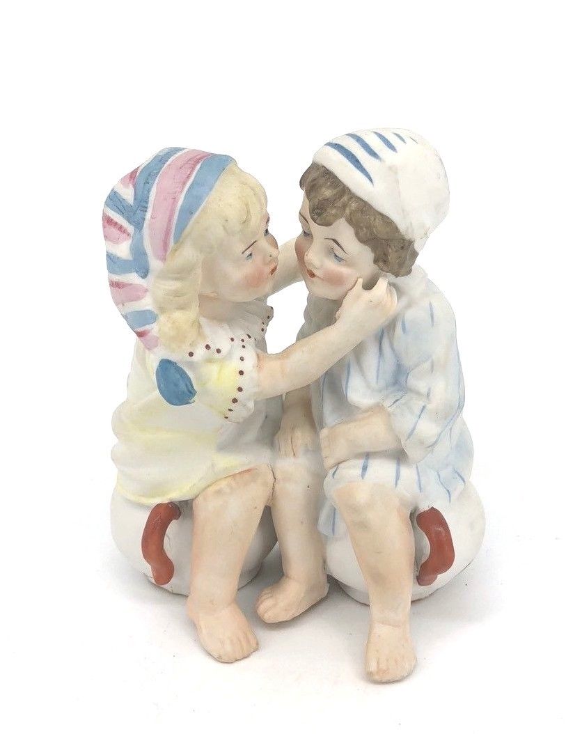 Title (ebay affiliate link): ANTIQUE GERMAN PORCELAIN FIGURINE GOOD NIGHT KISS CHILDREN IN NIGHTCAPS