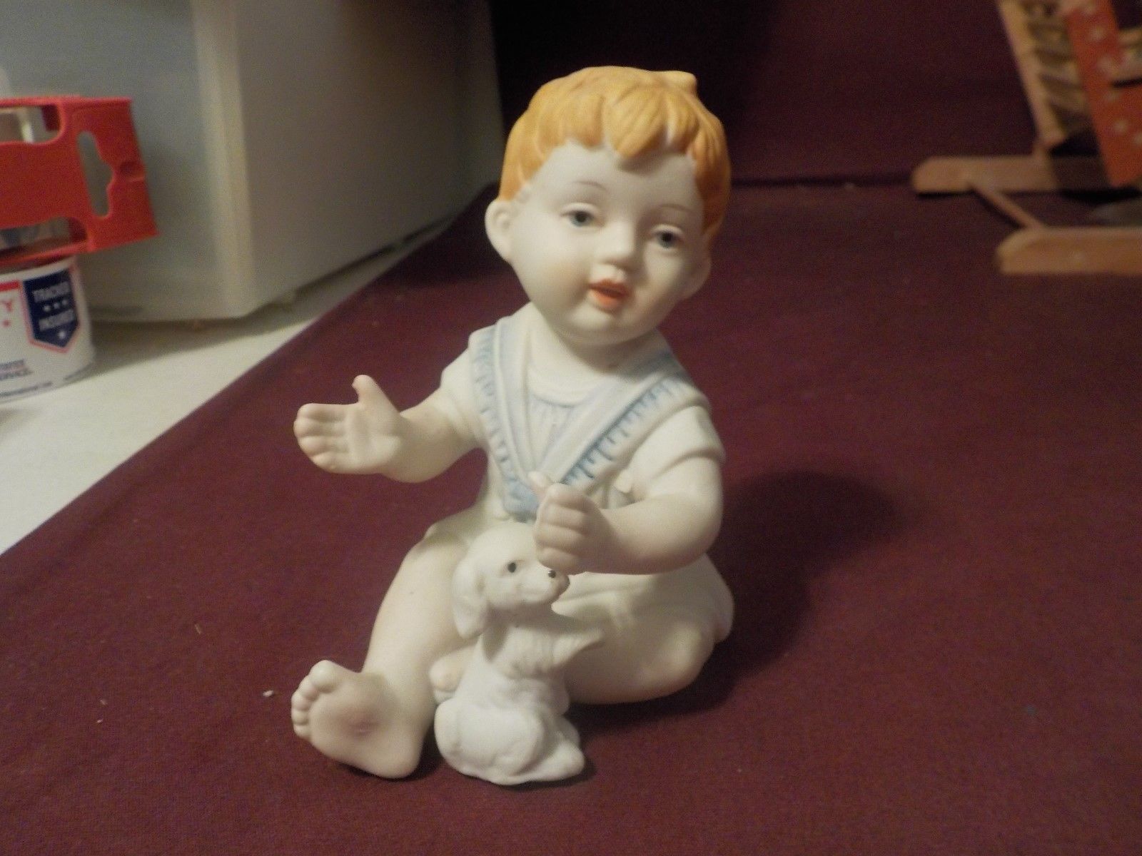Title (ebay affiliate link): ANTIQUE BISQUE PIANO BABIES??? LITTLE BOY WITH BLONDE HAIR & PUPPY