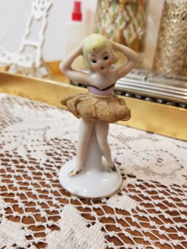 ! Vintage JAPAN DRESDEN LACE STYLE Ballerina 4" Tall