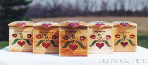 Title (ebay affiliate link): C1955 Pennsbury Pottery 5 Piece Spice Set Original Perfect Condition Impossible
