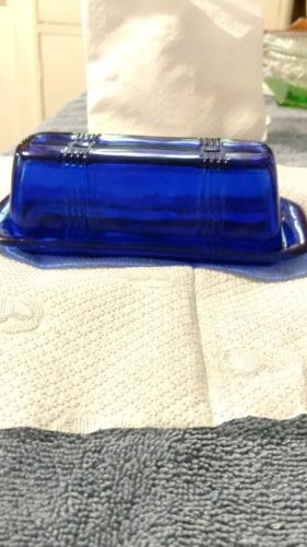 Title (ebay affiliate link): Vintage Indigo butter dish, great condition, criss cross pattern