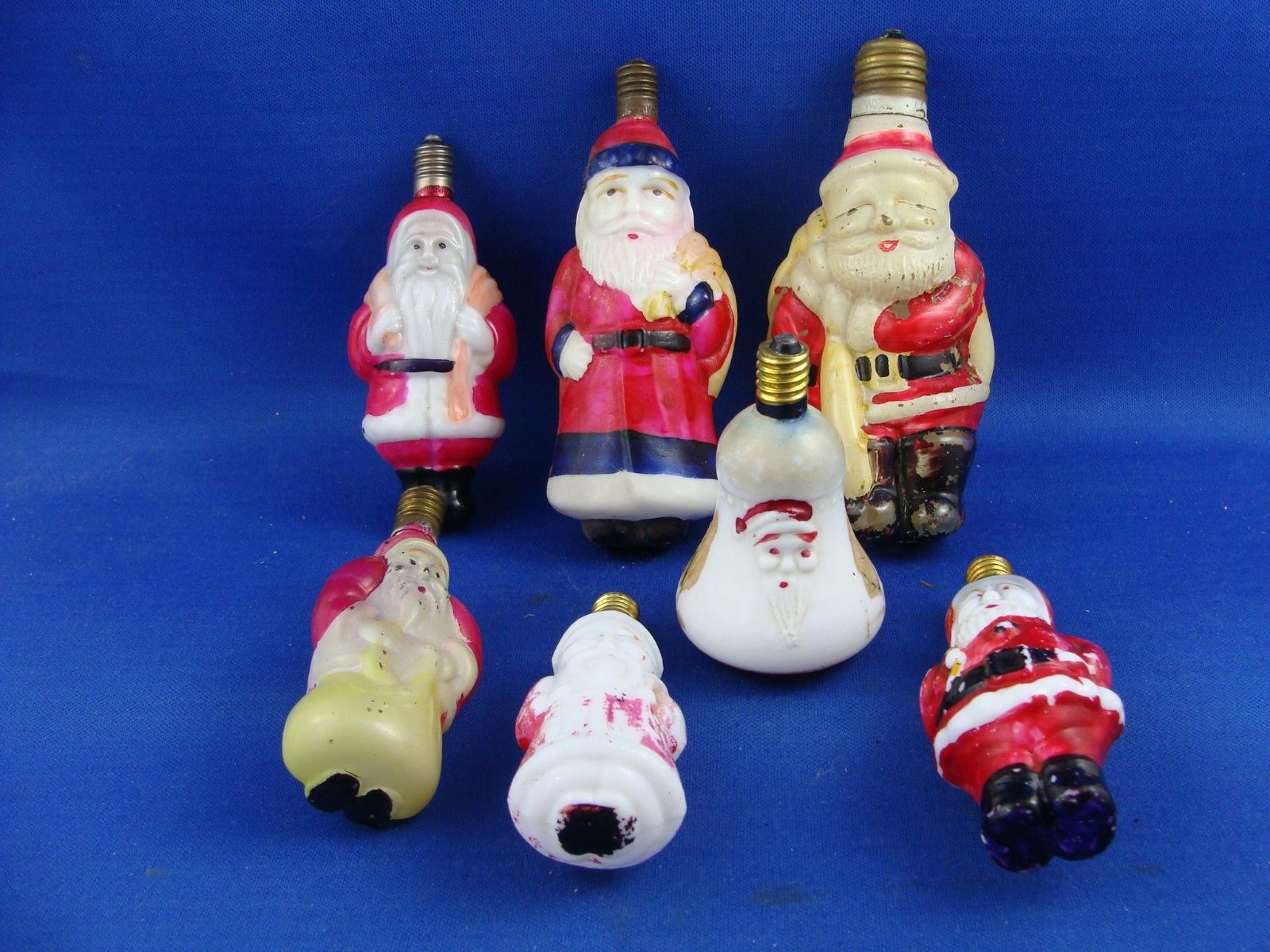 Title (ebay affiliate link): 7 VINTAGE CHRISTMAS FIGURAL BULBS - SANTA CLAUS - NOT TESTED