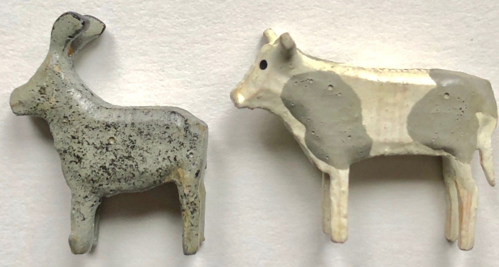 Title (ebay affiliate link): 2 Great Folk Art Wood Carved Putz Scene Miniature Cow+ (1") German Erzgebirge