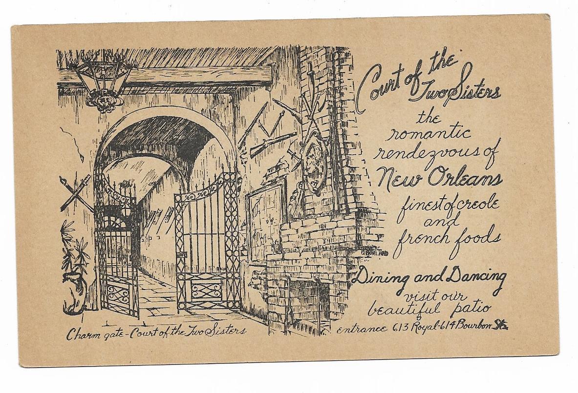 Title (ebay affiliate link): Vintage Louisiana Linen Postcard Court of the Two Sisters Charm Gate New Orleans