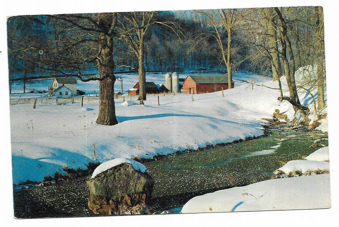 Vintage Wisconsin Chrome Postcard Spring Rises From Snowbound Farmland Winter