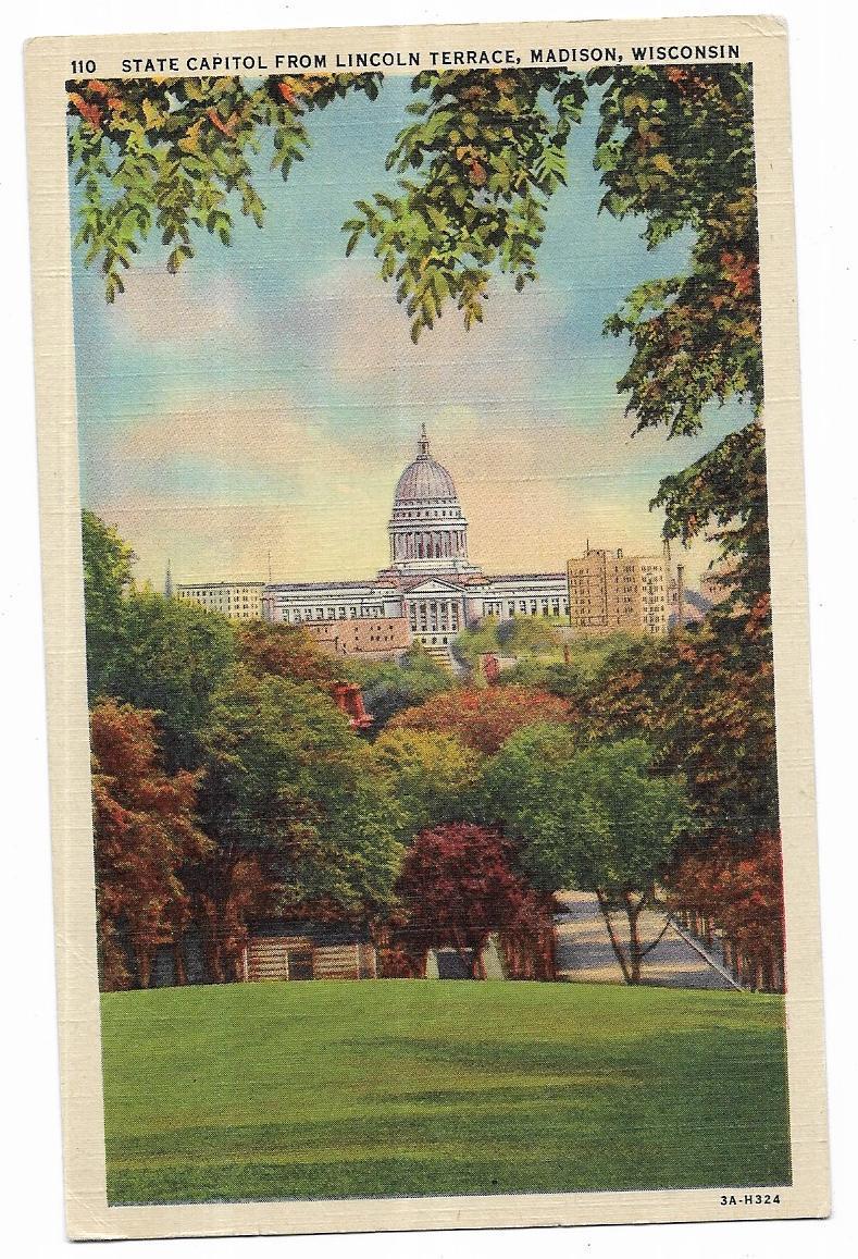 Vintage Wisconsin Linen Postcard State Capitol From Lincoln Terrace Madison