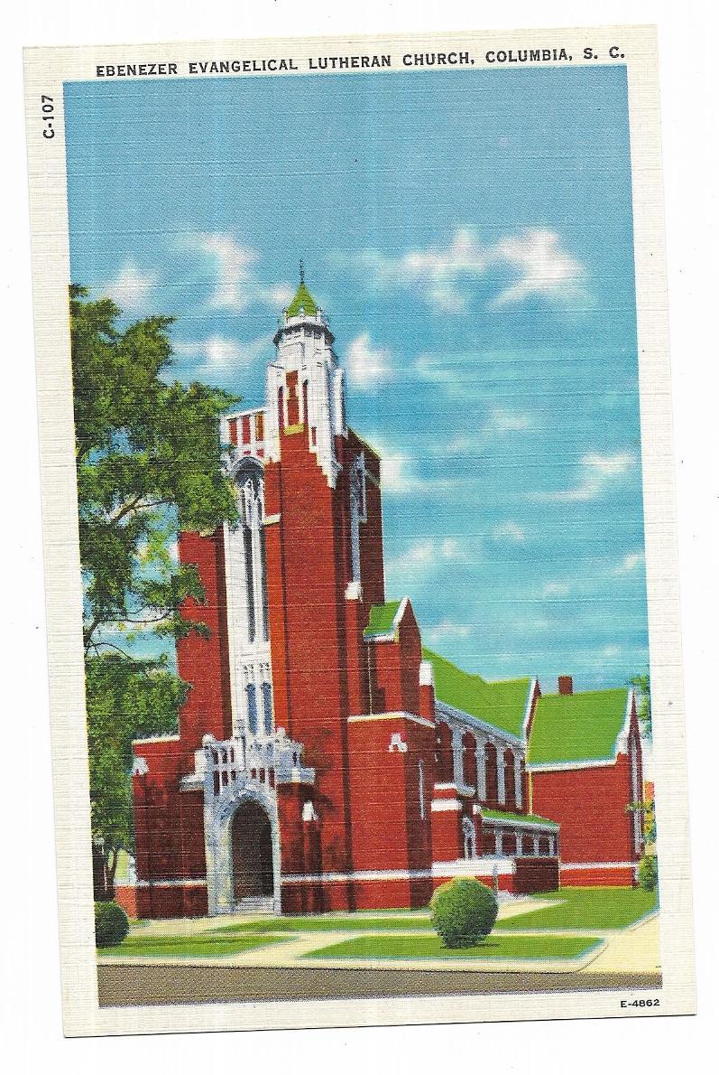 Title (ebay affiliate link): Vintage South Carolina Postcard Columbia Ebenezer Evangelical Lutheran Church