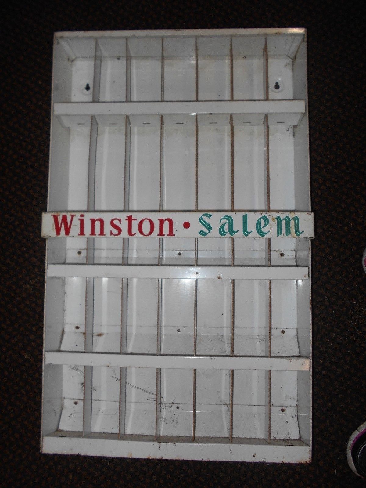 Title (ebay affiliate link): Vintage Cigarette Display Rack Winston Salem White Metal Bar Store Gas Station