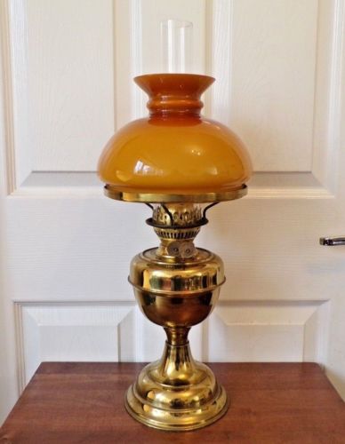 Title (ebay affiliate link): A vintage brass oil lamp with Caramel shade Duplex twin burner working order
