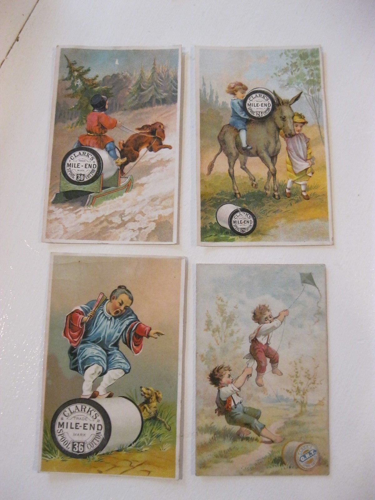 Victorian Trade Card 1800''s Clark''s Thread Donkey Rabbit Sled Kite Lot Scraps 50