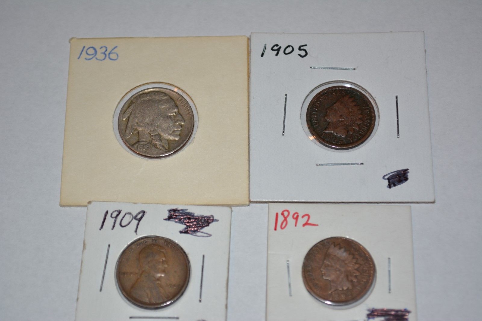 1909 Lincoln Penny,1892 and 1905 Cent,1936-P Buffalo Nickel