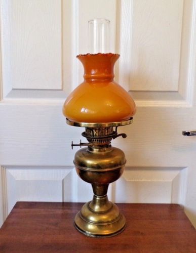 Title (ebay affiliate link): A vintage brass oil lamp with Caramel shade Duplex twin burner working order