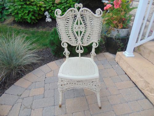 Title (ebay affiliate link): Vintage CREAM WICKER CHAIR mid century ornate french boho chic desk dining side