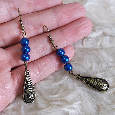 Title (ebay affiliate link): Vintage Womens Boho Blue Pearlize Beads Antique Plastic Teardrop Hook Earrings