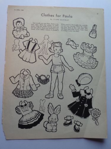 Title (ebay affiliate link): April 1952 magazine black line paper doll CLOTHES FOR PAULA to color & cut out!!