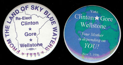 UNUSUAL PAIR OF 1996 MN CLINTON GORE WELLSTONE BUTTONS