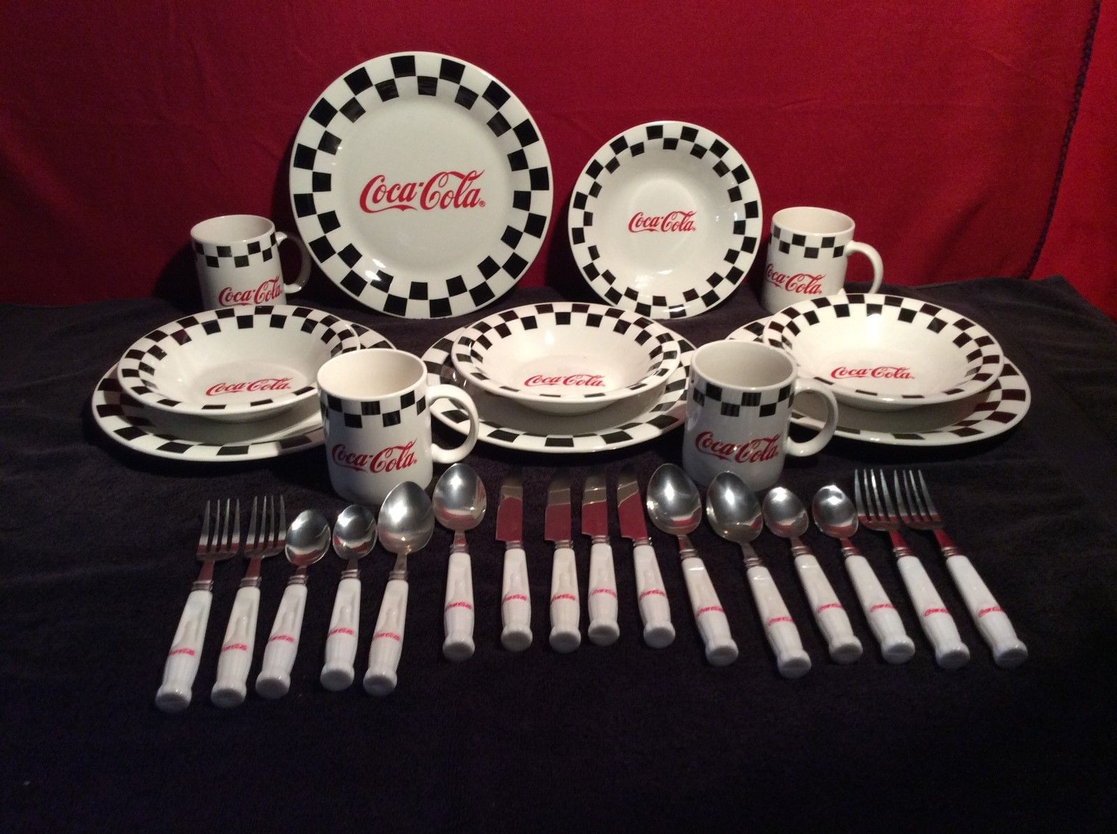 Title (ebay affiliate link): Coca Cola dish set. Black and White Checker pattern.