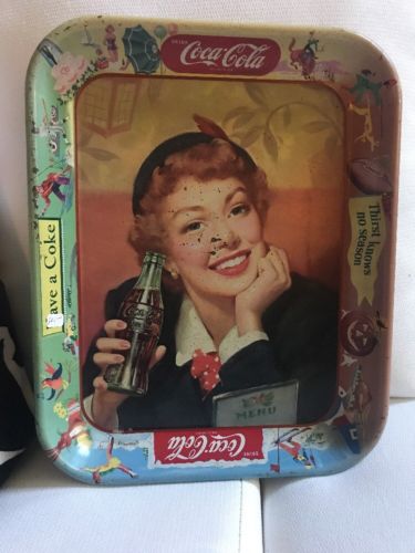 Title (ebay affiliate link): Vintage Coca Cola Serving Tray Menu Girl Thirst Knows No Season 1953 1950s Coke