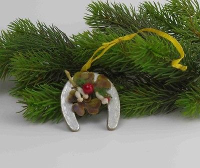 Title (ebay affiliate link): Antique Christmas Ornament German Dresden Cardboard, horseshoe with clover